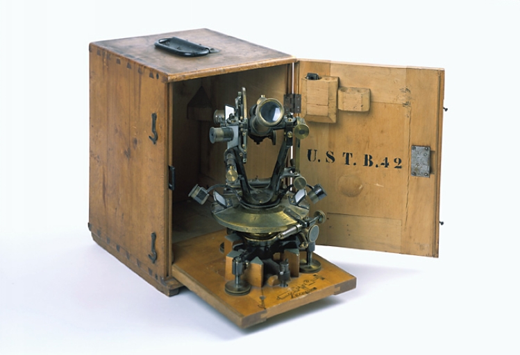 Instrument de mesure des angles pour lever des plans (théodolite Hildebrand), laiton, bois, verre et argent, quatrième quart du XIXe siècle