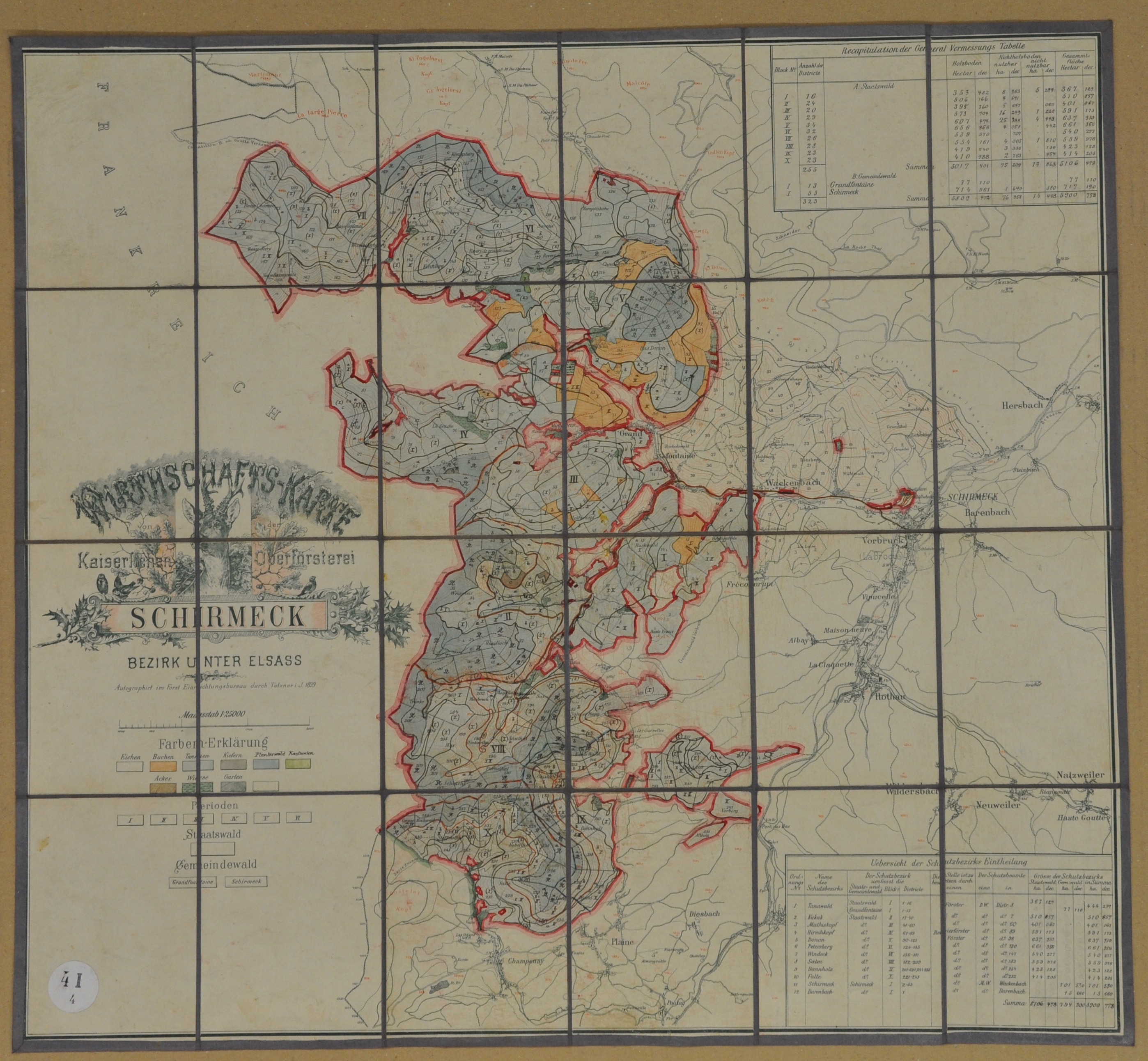 Wirthschaftskarte kaiserlichen Oberförsterei (carte domaniale de l’administration impériale des Eaux et Forêts) : région de Schirmeck, 1899