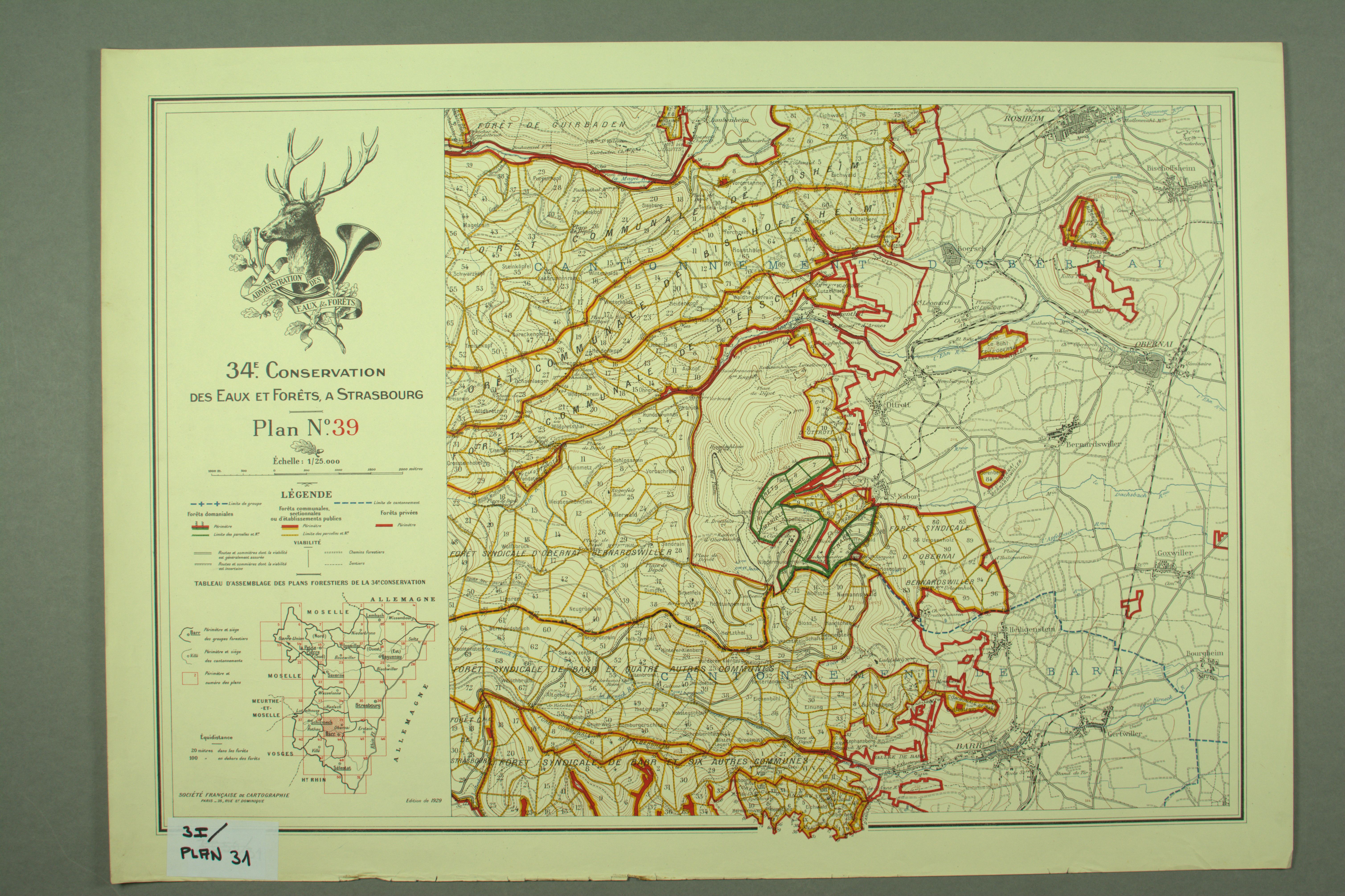 ADBR 3 I / PLAN 31. - Feuille n°39 : secteur de Barr, Obernai, Boersch et Rosheim, 1929